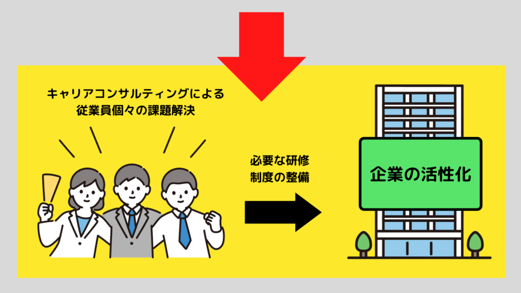 社員のキャリア自律が促されると、個々の課題が解決されるだけではなく、目的意識が生まれ組織との関わり方が良い方向へ変わっていきます。